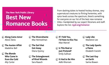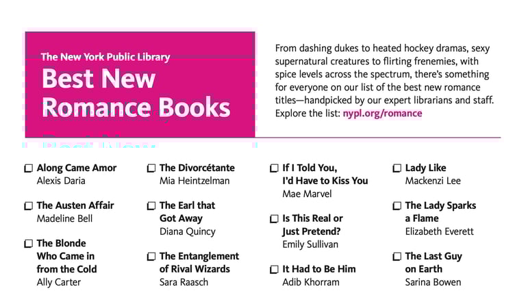 Best New Romance Books of 2026 for Adults featuring The Divorcétante. Read the New York Public Library Article. Print the full List.