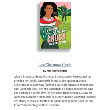 15 New Holiday and Christmas Romance Books to Celebrate the Season featuring Last Christmas Crush. Read the New York Times Article.