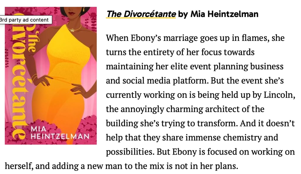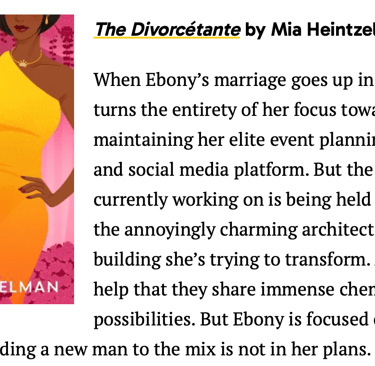 The Divorcétante is on Book Riot's "June Romance Reads to Ring in Summer" list🎉